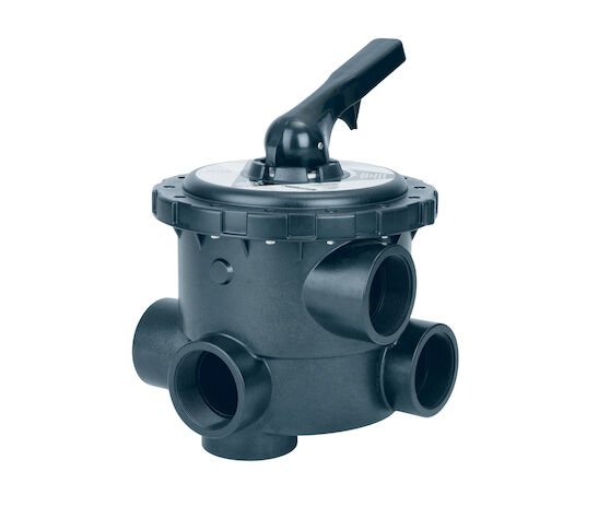 Válvula selectora lateral com ligações a filtros. Corpo e tampa injectados com ABS com fibra de vidro. Manípulo